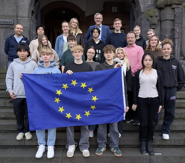 In der vergangenen Woche haben acht Gastschülerinnen und Gastschüler aus Urjala das Hittorf und ihre Gastfamilien besucht. Neben der dargestellten Projektarbeit standen natürlich auch einige Ausflüge und Aktivitäten auf dem Programm: Gebrannte Mandeln auf dem Recklinghäuser Weihnachtsmarkt probieren, das EU-Parlament in Brüssel erkunden, dem neuen Bürgermeister Axel Tschersich die Hand schütteln, ein Champions League Spiel in Dortmund bestaunen und 533 Stufen zur Aussichtsplattform des Kölner Doms bewältigen.