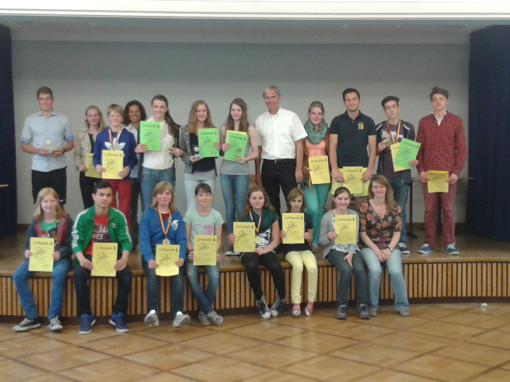 Darüber hinaus erhielten zahlreiche Teilnehmer/-innen Urkunden für tolle Leistungen in einzelnen Lagen. Ein herzliches Dankeschön gilt an dieser Stelle erneut den Sporthelfern, die zum Gelingen der schulinternen Meisterschaft beigetragen haben.