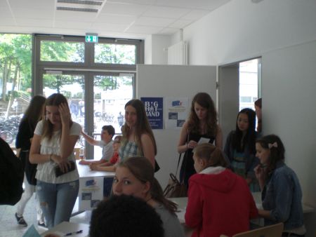 Anlässlich der diesjährigen Wahlen zum Europäischen Parlament haben Schülerinnen und Schüler der Jahrgangsstufen 8, 9 und EF am Mittwoch vorletzter Woche erstmalig an der Junior-Europawahl teilgenommen.In dem bundesweiten Projekt können Jugendliche schon vor dem Erreichen des gesetzlichen Wahlalters demokratisches Handeln innerhalb einer Wahlsimulation ganz praktisch erleben. Nachdem sich die Schüler im Politikunterricht mit den Funktionen, Abläufen und Inhalten der Wahlen vertraut gemacht hatten, konnten Sie im eigens eingerichteten Wahlbüro neben der Mensa ihre Stimme für Europa abgeben. Die verantwortungsvollen Wahlhelferinnen und -helfer aus den Klassen 8 und 9 organisierten den reibungslosen Ablauf der Wahl und zählten anschließend die Stimmen aus. Mit einer Wahlbeteiligung von 86,6 % liegen die Schülerinnen und Schüler weit über der Wahlbeteiligung bei der offiziellen Wahl am vorletzten Sonntag und haben somit gezeigt, dass sie beim Thema Europa gerne mitreden! Das Ergebnis der Juniorwahl kann am Stufenbrett der Stufe EF eingesehen werden. Das Gesamtergebnis der Juniorwahl in Deutschland ist unter www.juniorwahl.de abrufbar.