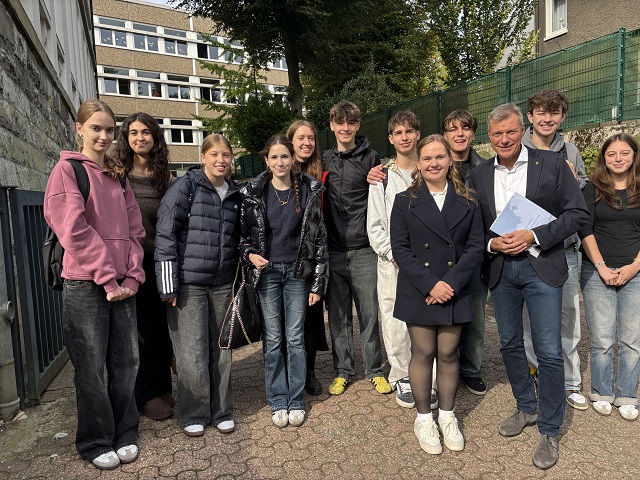 In den letzten Monaten waren an der Planung, Gestaltung und Ausführung dieses Projektes viele Menschen beteiligt, so z. B. die Volkshochschule, das Stadtarchiv und die Vestische, aber auch vier Lehrerinnen aus den Fachschaften Sozialwissenschaften, Geschichte und Religion und Schülerinnen unserer iRespect AG. Wir danken allen Hittorferinnen und Hittorfern, die sich in den letzten Monaten und besonders auch heute für die Entstehung des Gedenkortes engagiert haben.