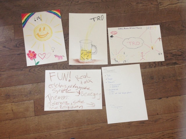 Nachdem uns ein paar Regeln und die Tagesordnung erläutert wurden, sollten wir unsere Erwartungen an die nächsten Tage in kleinen Gruppen zu Papier bringen. Diese beinhalteten neben Spiel, Spaß und Erholung auch das Entdecken anderer Meinungen oder neuer Sichtweisen auf verschiedene Themen.