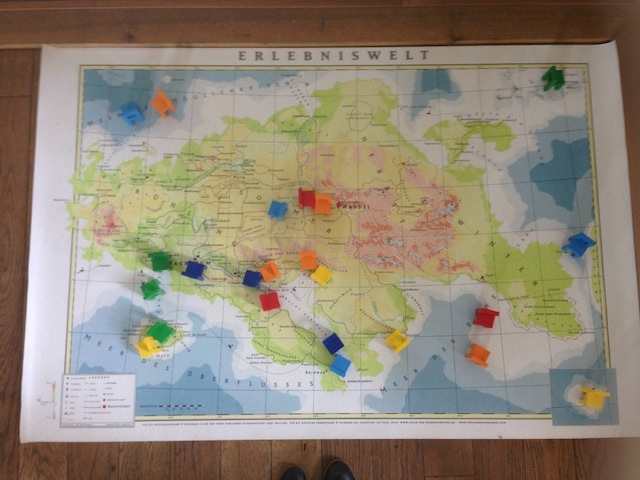 Außerdem sollten wir uns auf einer fiktiven Landkarte Orten zuordnen, die Namen wie „Sommer“, „Erholung“, „Meer der Möglichkeiten“ oder „Neuanfang“ trugen und uns am Ende der „Tage der religiösen Orientierung“ überlegen, wo wir uns nach diesen 3 Tagen sehen.
