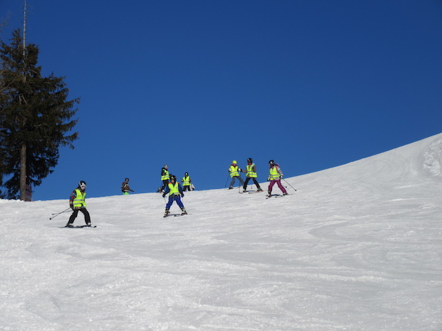 Zunächst erfolgte eine spielerische Gewöhnung an das für die meisten Kinder ungewohnte Sportgerät. Doch schnell konnten wir den seichten Hügel des „Klausilandes“ verlassen, bis am letzten Tag sogar ein kleines Skirennen veranstaltet wurde, dass alle Schülerinnen und Schüler mit Bravour meisterten.