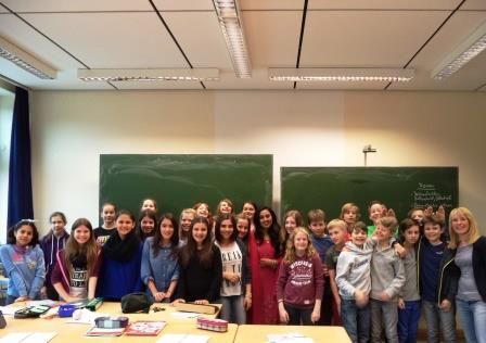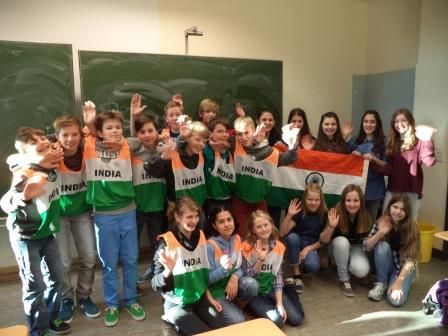 Der Klasse 6a bot sich in diesem Zusammenhang eine ganz besondere Gelegenheit. Das Lernen durch Begegnung bekam hier ein konkretes Gesicht. Frau Kohli besuchte die 6 a, um den Schülerinnen und Schülern als Inderin und somit als Expertin im Hinblick auf ihre Fragen zu Land und Leuten Rede und Antwort zu stehen. Die Schülerinnen und Schüler interessierten sich dabei nicht nur für den indischen Fußball, sondern auch für Themen wie zum Beispiel indische Religion, Sprache, Kleidung oder das Alltagsleben allgemein. Frau Kohli nahm die Schülerinnen und Schüler mit Hilfe vieler farbenfroher Bilder und lebhafter Erklärungen mit auf eine Reise, bei der die Kinder sowohl die bunten Seiten Indiens als auch die Schattenseiten kennenlernten.