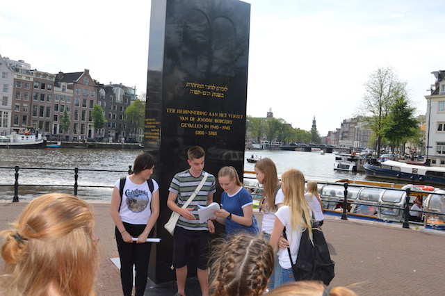 Die Gruppe verließ das Haus mit bewegenden Eindrücken und vertiefte diese an geschichtsträchtigen Orten der Stadt. Sie erkundeten Gedenkorte, die an die Judenverfolgung und den Widerstand der Amsterdamer Bürger in den besetzten Niederlanden erinnern. In diesem Zusammenhang führten sie Gespräche mit Passanten und stellten fest, wie wichtig solche Gedenkorte für eine Stadt wie Amsterdam sind. Mit vielen besonderen Eindrücken und Ideen aus der multikulturellen Grachtenmetropole kehrte die Gruppe am Abend ans Hittorf-Gymnasium zurück.