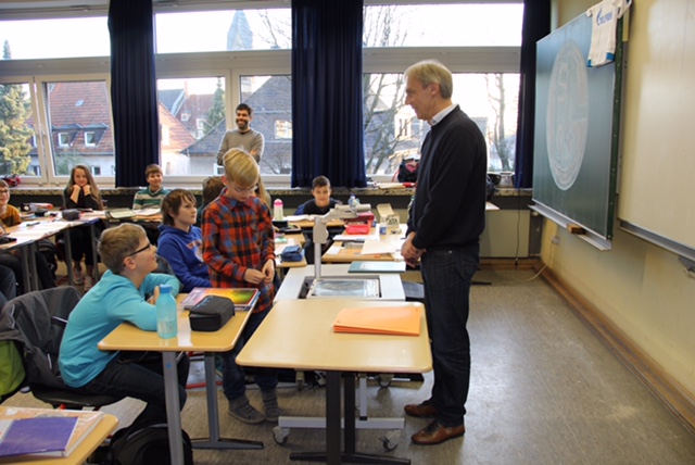 Im Fünfminutentakt übergab er jeder Klasse die Zeugnismappe und bedankte sich für die schöne Zeit. Gleichzeitig versprach er, jede Jahrgangsstufe am Tag der Übergabe ihrer Abiturzeugnisse zu besuchen. So können wir uns auf seinen Besuch bis 2024 freuen, denn dann bekommen die Schülerinnen und Schüler der jetzigen Klassen 5 ihre Abiturzeugnisse überreicht.