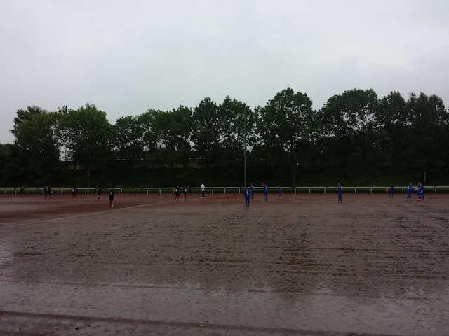 Ein schönes Spiel konnten die mitgereisten Eltern, die hinter einem Tor Regenschutz suchten, nicht erwarten. Zu viele Pfützen wurden auf dem Ascheplatz "Lange Wanne" vom strömenden Regen gebildet. Dennoch kamen die Hittorf-Anhänger auf ihre Kosten, fielen doch im ersten Durchgang gleich sieben Tore auf ihrer Seite. Die Nachwuchsfußballer zeigten sich gegen die Wolfgang-Borchert-Gesamtschule sehr treffsicher, nur der Torwart war beschäftigungslos. Die zweite Hälfte war dann noch eindrucksvoller, am Ende stand ein eindeutiger 19:0-Erfolg auf dem leicht durchnässten Spielbericht. In der zweiten Runde am 23.09. wartet nun das MCG, ein ähnliches Ergebnis ist dabei sicherlich nicht zu erwarten.