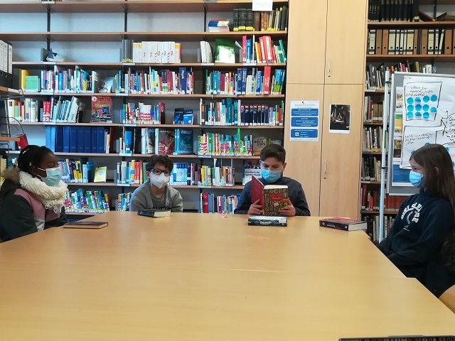 Am 22.11. entführten uns Marah Nayla Simo Tagne (6a), Jannis Dobler (6b), Tristan Stegmann (6c) und Mira Dudenhausen (6d) mit ihren Vorlesekünsten in fremde Welten. Sie hatten sich zuvor als SiegerInnen ihrer jeweiligen Klassen qualifiziert und durften nun ihr Vorlesetalent vor der Jury unter Beweis stellen. In der ersten Runde wurde eine etwa dreiminütige selbst ausgewählte Textstelle vorgestellt und in der anschließenden zweiten Runde wurden die TeilnehmerInnen mit einer ihnen unbekannten Textstelle konfrontiert. Diese stammte aus dem Buch „Tintenherz“ von Cornelia Funke, in welcher die Protagonistin Meggie ihre Zuhörer ebenfalls mit ihren Vorlesekünsten in den Bann zieht. Auch wenn die TeilnehmerInnen – im Gegensatz zu Meggie – niemanden aus ihren Büchern hinauslasen, boten sie uns einen äußerst spannenden und unterhaltsamen Vormittag.