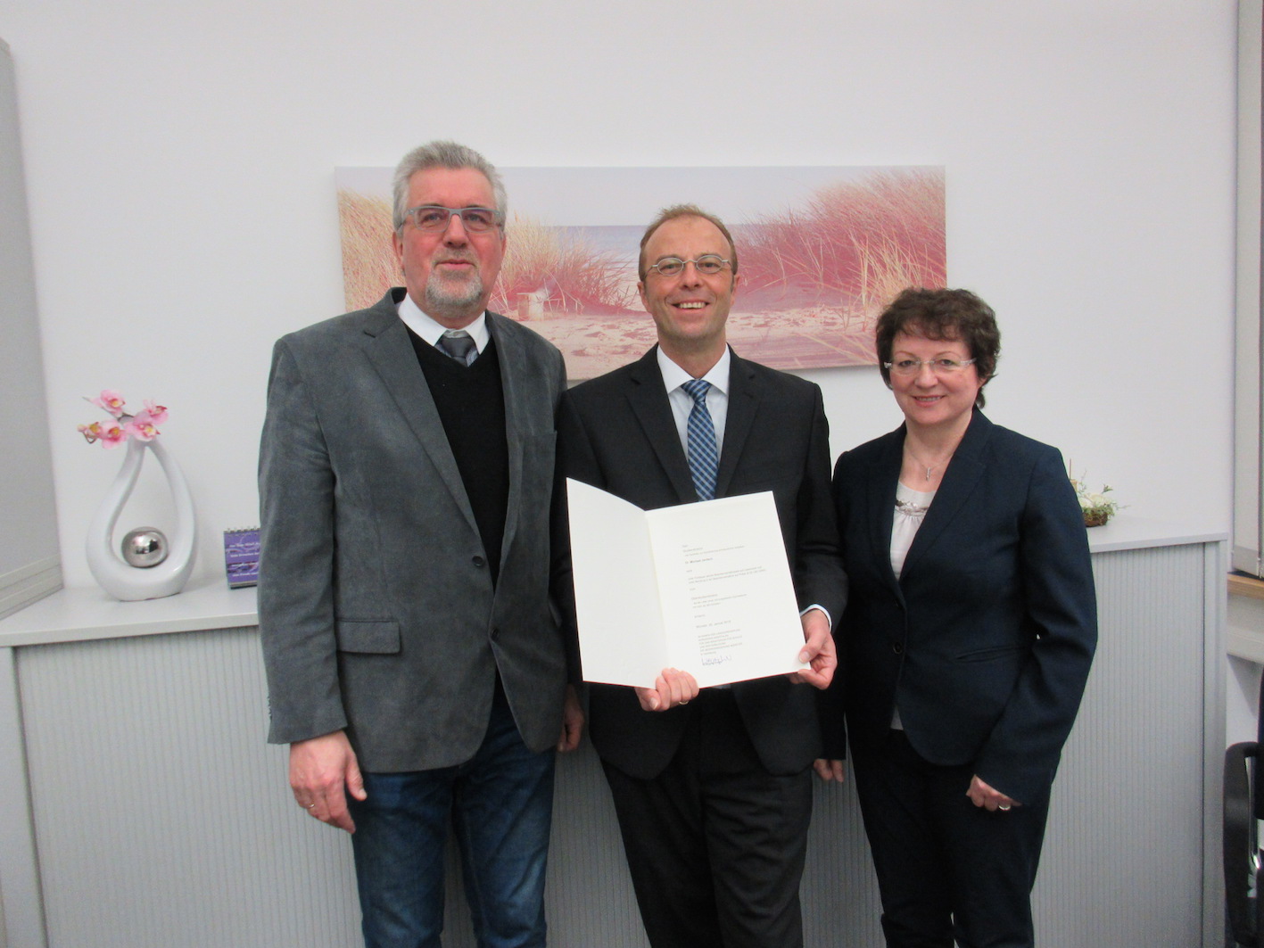Am Montag, den 1. Februar 2016 wurde Herr Dr. Jentsch in der Bezirksregierung Münster zum Oberstudiendirektor ernannt und in Nachfolge von Hermann Maas mit der Leitung des Hittorf-Gymnasiums Recklinghausen beauftragt. Der zuständige Schuldezernent Dr. Gernod Röken und die Hauptdezernentin Frau Sowa-Dingemann beglückwünschten Herrn Dr. Jentsch und wünschte ihm für seine Tätigkeit alles Gute.