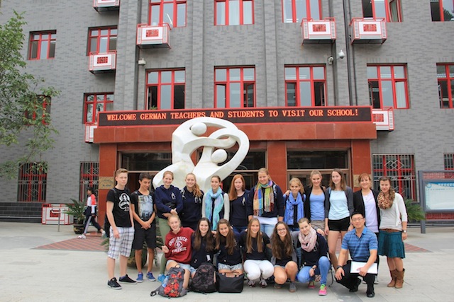 Beim bereits zweiten Besuch unserer Partnerschule in China, der Middle School attached to Beijing Youth Politics College in Beijing, wurde eine Schülergruppe von 16 Schülerinnen und Schülern des Hittorf-Gymnasiums unter der Leitung von Denise Roth und Carolin Marchelek sehr herzlich empfangen.