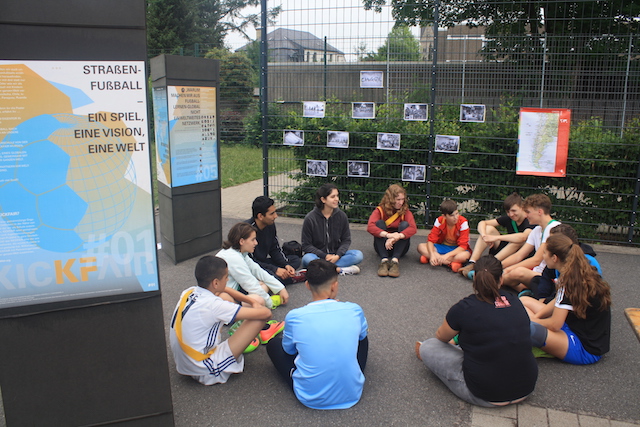 Zusätzlich konnten die verschiedenen Mannschaften mit Fabián und Javiera aus Chile die Arbeitsweise von CHIGOL, einer Partnerorganisation von KICKFAIR e.V., kennenlernen und damit die globale Dimension des Straßenfußballs erfahren. Dass einige ihre schulischen Sprachkenntnisse im Englischen und Spanischen anwenden konnten, war dabei ein gewünschter Nebeneffekt, den die Treffen mit den Experten aus den Partnerländern ausmachen.