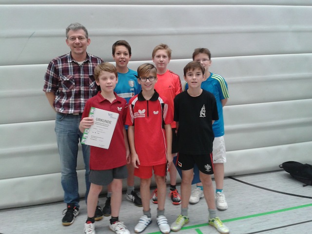 In der jüngsten Wettkampfklasse im Tischtennis konnten sich die Spieler des Hittorf-Gymnasiums in eigener Halle gegen die Mannschaften des Gymnasiums Petrinum Recklinghausen, Theodor-Heuss-Gymnasiums Waltrop und des Marie-Curie-Gymnasiums Recklinghausen durchsetzen und wurden mit drei deutlichen Siegen Kreismeister 2015. Für das Hittorf-Gymnasium standen folgende Schüler erfolgreich an der Platte: