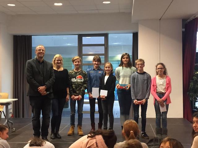 Von der Jury wurde Viktoria Dumalski aus der 6a als Siegerin des diesjährigen Vorlesewettbewerbes ausgewählt, welche eine Textstelle aus dem Buch „Ella in der Schule“ von Timo Parvela vorlas und in beiden Vorlesedurchgängen die meisten Punkte erhielt. Sie wird Anfang nächsten Jahres das Hittorf-Gymnasium aus Kreisebene vertreten. Wir drücken ihr hierfür ganz fest die Daumen!