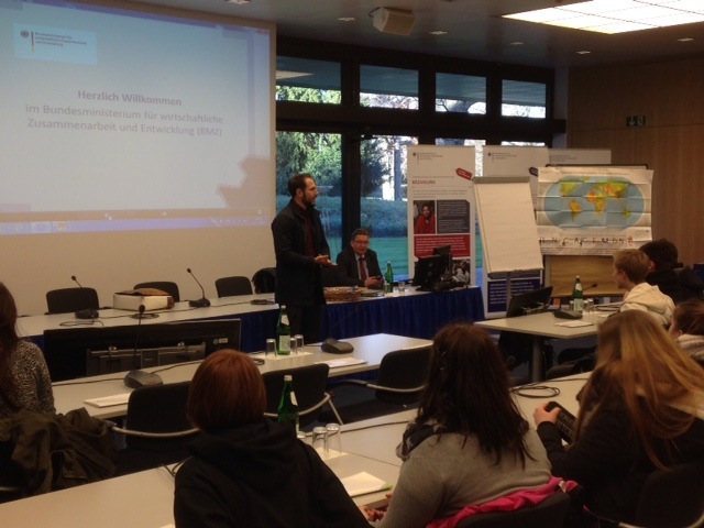 28 Schülerinnen und Schüler der Stufe EF hatten vom 10. bis 12. Dezember die Gelegenheit, an dem jährlich stattfindenden Seminar „Interdependenz - Oder warum geht uns die Dritte Welt an?“ teilzunehmen. Durchgeführt wird dieses Seminar von der Europäischen Akademie NRW in Bonn. Am ersten Seminartag wurden wir in das „Ministerium für wirtschaftliche Zusammenarbeit und Entwicklung“ (BMZ) eingeladen. Die Schüler bekamen einen Einblick in die Arbeitsweise des Ministeriums, lernten Probleme und Grenzen der Entwicklungshilfe kennen und konnten kritische Fragen zu bilateralen Projekten mit Ländern der Dritten Welt stellen.