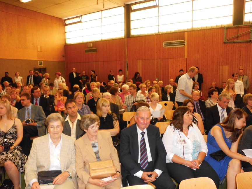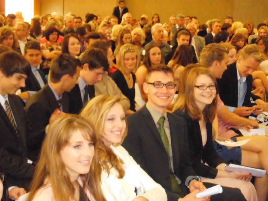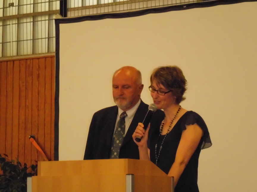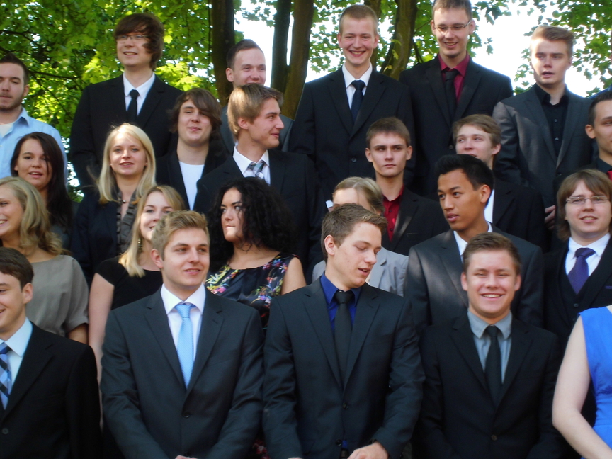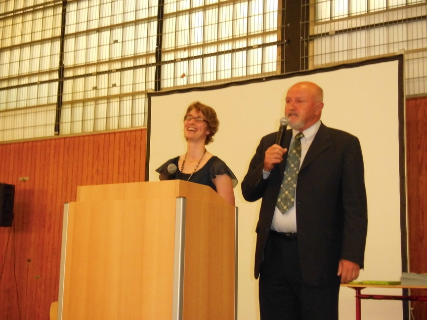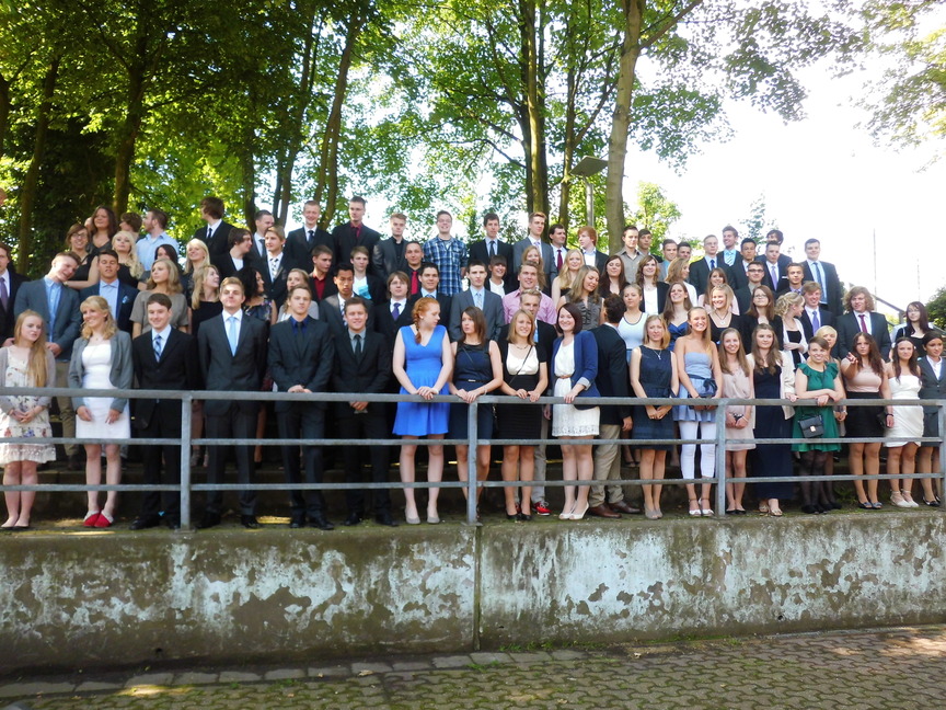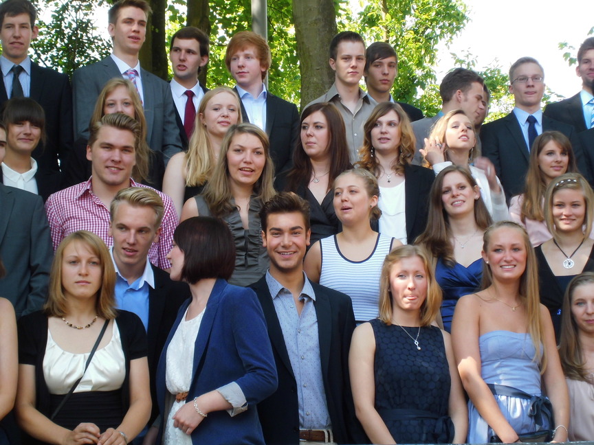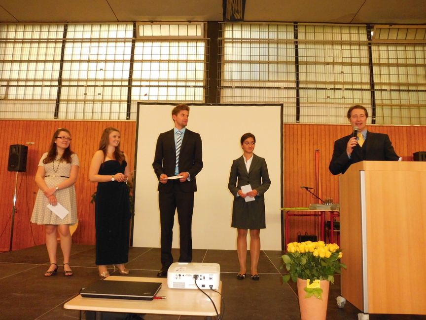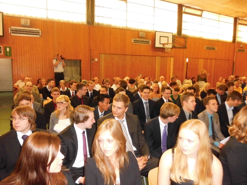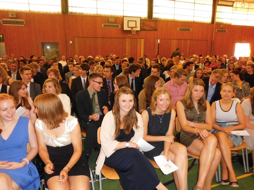 Nach der Begrüßung durch Herrn Maas hielt Frau Sperz, die mit Herrn Jakschik zusammen die Stufenleitung gebildet hatte, ihre Ansprache an den Jahrgang. Die Schüler Amelie Schröder, Pia Händel und Christian Paternoga gestalteten das musikalische Rahmenprogramm, und zwischen den Grußworten von Herrn Fork, der den Verein der Ehemaligen repräsentierte, und Herrn Hegering, der für den Goldjahrgang sprach, flossen hier und da bei den Abiturienten dann doch einige Tränen des Abschieds.