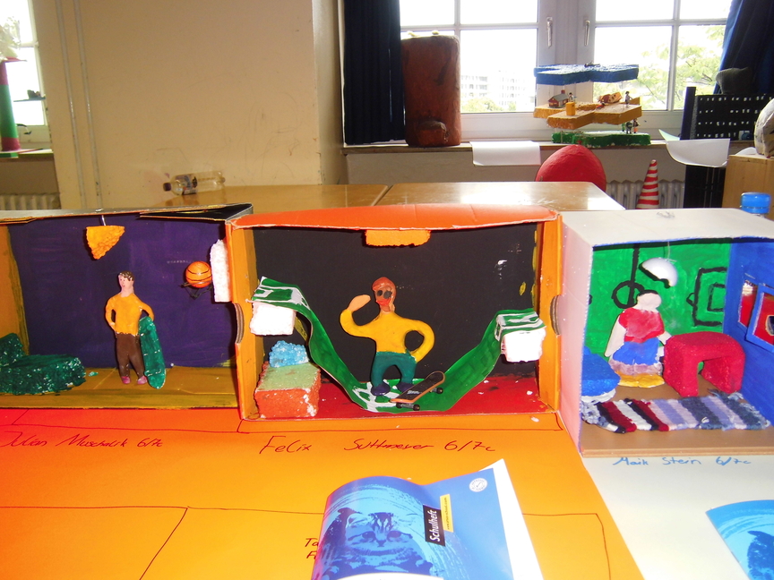 - „Ohne Worte“, Klasse 6c bei Frau Dietze im Kunstunterricht. Die 6c ist mit einer anderen Klasse in Kosowa in Kontakt getreten. Die Hittorf-Schüler haben viele Bilder gemalt, auf denen Zimmern zu erkennen sind, und diese werden nach Kosowa geschickt. Dies war eine Idee eines Schülers, der Verwandte in Kosowa hat.