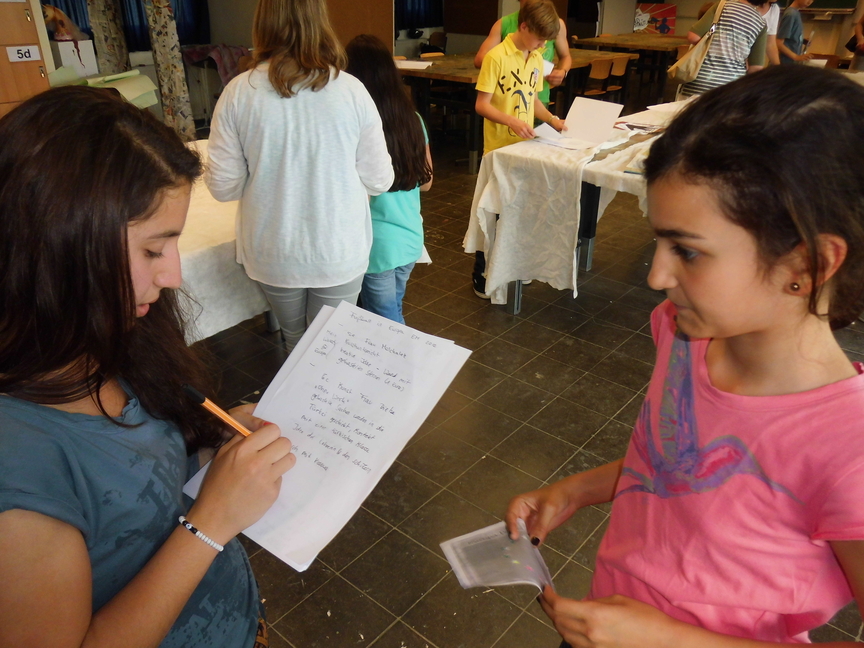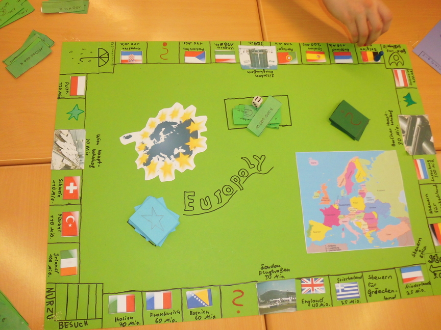 - Spiele rund um Europa, Klasse 7c bei Frau Kohs. Die Lehrerin und die Schüler haben selbst entworfene Spiele oder alte Spiele, die sie umgeändert haben, vorgestellt.