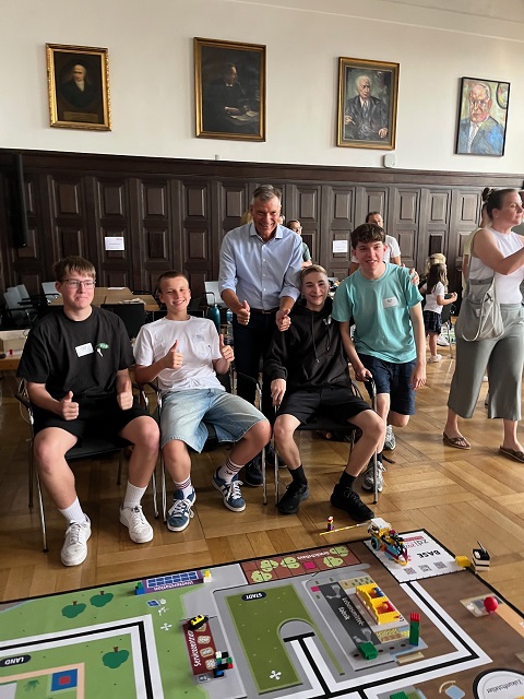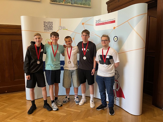 Im Mai hatte sich das Team „Hittbots“ bereits für den Regionalentscheid des zdi-Roboterwettbewerbs qualifiziert. Am 14.06. war es dann soweit. Im Recklinghäuser Rathaus wurden die Teilnehmer nicht nur von den Eltern, sondern auch von Bürgermeister Christoph Tesche angefeuert. Leider reichte es am Ende nicht für die Qualifikation zur Finalrunde. Dennoch können alle Teilnehmer auf eine spannende und erfolgreiche Wettbewerbssaison zurück blicken und werden im nächsten Jahr sicher einen neuen Anlauf starten.
