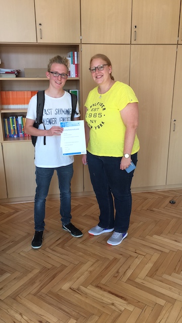 Julius Ponhöfer aus der Jahrgangsstufe Q1 wurde nach den Ferien offiziell seine Urkunde zur Teilnahme an der Internationalen Chemieolympiade überreicht. Er absolvierte erfolgreich die 1. Runde, setzte sich bundesweit gegen einige tausend weitere Teilnehmer durch und durfte mit einigen hundert weiteren Teilnehmer in die 2. Runde einziehen, in der eine zentrale Klausur geschrieben wurde. Leider konnte sich Julius nicht für die 3. Runde qualifizieren, die nur die 60 besten Klausurschreiber erreichen. Allerdings wurde Julius wegen seiner besonderen Leistungen in der 2. Runde mit einem Buchgutschein geehrt. Top motiviert hat Julius bereits die Aufgaben der 1. Runde der diesjährigen Chemieolympiade beantwortet und hofft auch dieses Jahr auf einen Einzug in die 2. Runde. Das Hittorf gratuliert im Namen von Frau Hagedorn ganz herzlich und drückt weiterhin die Daumen!