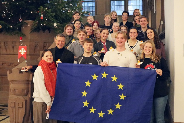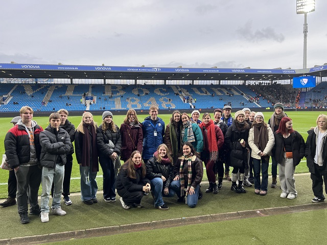Im Rahmen eines Erasmus+ Projektes erstellten zwanzig Schülerinnen und Schüler des Hittorf-Gymnasiums und ihrer finnischen Partnerschule Väinö Linnan Lukio aus Urjala Geocaching Touren in Recklinghausen. Spielerisch kann man in Recklinghausen lehrreiche, spannende und manchmal auch geheimnisvolle Orte zu den Themen Stadtgeschichte, Sagen und Legenden, Lokalsport, Sehenswürdigkeiten und Zukunft erkunden. Mithilfe der App „Geocaching“ kann man künftig auf die Suche im gesamten Stadtgebiet gehen und sich von Ort zu Ort rätseln. Wenn man die GPS-Schnitzeljagden des deutsch-finnischen Schulteams erfolgreich absolviert hat, kann man auch die versteckten Geocaching Boxen mit Logbüchern auffinden. Die Touren sind im Sinne der europäischen Zusammenarbeit sogar trilingual - auf Deutsch, Englisch und sogar Finnisch. Aber nicht nur die Erstellung der Geocaching Touren standen für die finnischen Gäste auf dem Programm: Es wurde dem VfL Bochum die Daumen bei Spiel gegen Werder Bremen gedrückt, Tulpen in Amsterdam bewundert, die 533 Treppen des Kölner Doms bewältigt und die Escape Rooms im Trainingsbergwerks in Recklinghausen gelöst. Auch kulinarisch lernten die finnischen Schülerinnen und Schüler das Ruhrgebiet und die Weihnachtszeit schätzen: Von Currywurst über gebrannte Mandeln, Reibekuchen bis Weihnachtsplätzchen war selbstverständlich alles dabei. Auch zwanzig „Stadtenten“, offiziell überreicht vom Bürgermeister Herrn Tesche, fanden eine neues Zuhause in Recklinghausen und im finnischen Urjala. Im kommenden März werden die Schülerinnen und Schüler vom Hittorf nach Finnland reisen und dort weitere Geocaching Touren im Rahmen des Erasmus+ Projektes erstellen und Geocaching Boxen im ländlichen Urjala verstecken. Tervetuloa etsimään niitä myös sieltä. Mit der Väinö Linnan Lukio in Urjala wurde bereits im November eine langjährige und umfangreiche Schulpartnerschaft vereinbart, sodass auch kommende Projekte und Austausche sowie Auslandsaufenthalte für Schülerinnen und Schüler am Hittorf-Gymnasium realisiert werden können.