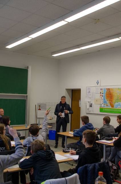 Am Freitag, dem 25. Januar 2019 besuchte Bürgermeister Christoph Tesche die Politikkurse der Jahrgangsstufe 8. Die Kurse 8a/b sowie 8c/d hatten zu Beginn des Schuljahres Fragen zum Thema „Politiker* ein Traumjob?“ entwickelt und konnten diese nun dem Bürgermeister stellen.