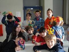 Weil fast 500 Schülerinnen und Schüler am Känguru-Wettbewerb 2012 teilgenommen haben, haben die Verantwortlichen des Wettbewerbs bereits zum zweiten Mal dem Hittorf-Gymnasium einen Koffer mit besonderen Materialien und Büchern geschenkt. Unter vielen verschiedenen Angeboten konnten wir uns Materialien im Wert von 150 € aussuchen. Nachdem wir uns Ende 2011 für einen Koffer mit Körpermodellen und mehrere Geobretter entschieden haben, bestellten wir in diesem Jahr einen Koffer mit Polydron Frameworks, mit dem man z.B. Körper bauen kann – regelmäßige und auch sehr kreative Neuschöpfungen, wie das Foto aus dem Mathematik-Neigungsfach zeigt. Außerdem bekamen wir drei Bücher mit etwas anderen Matheaufgaben.