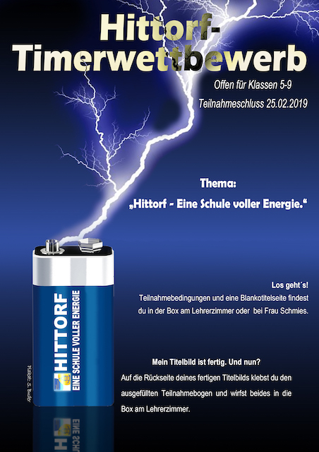 So lautet das Thema des diesjährigen Hittorf-Timerwettbewerbs, der nun gestartet ist. Wenn ihr in die Klasse 5 bis 9 geht, habt ihr wieder die Möglichkeit, eines der Titelbilder für den Schultimer des kommenden Schuljahres 2019/2020 zu gestalten.