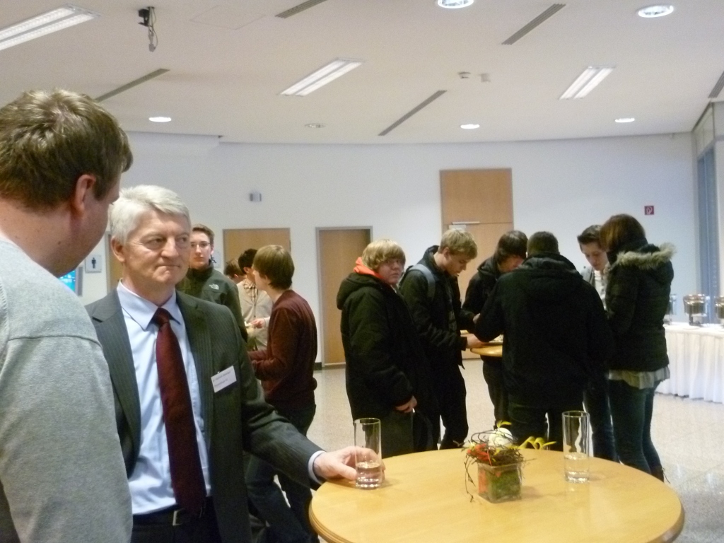 Im Anschluss konnten die Schüler die gewonnenen Eindrücke am üppigen Nudelbuffet verarbeiten und noch weitere Fragen an Herrn Dr. Hiesinger stellen, der sich noch eine weitere Stunden Zeit nahm und sich beim Essen unter die Gäste mischte.