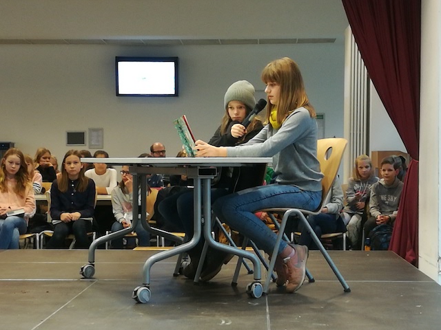 Ein großes Dankeschön geht an alle Vorleserinnen, an die Jury sowie an Mathilda Klein (6a), welche während des gesamten Wettbewerbes das Mikrofon in die Hand nahm, damit die Kandidatinnen sich voll und ganz auf das Vorlesen konzentrieren konnten.