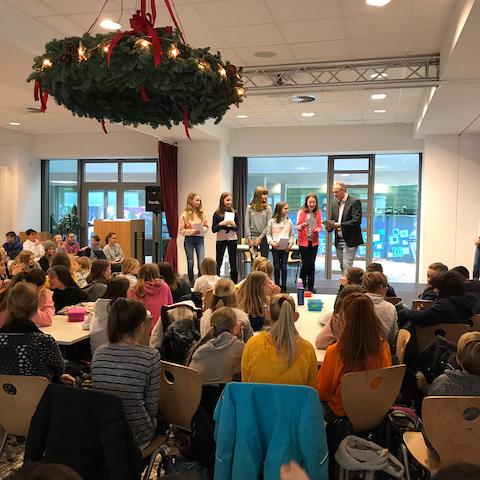 Der zweite Platz ging an Merle Hausmann (6a), welche uns mit ihrer Textstelle aus „Weihnachten mit der buckligen Verwandtschaft“ von Dietmar Bittrich bereits im ersten Durchgang in vorweihnachtliche Stimmung versetzte. Alle fünf Teilnehmerinnen durften sich über Buchgutscheine freuen.