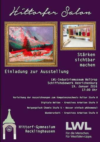 Ob spannende Forschungsprojekte aus dem Bereich des Neigungsfachs Chemie, kreative Arbeiten des Wahlpflichtbereichs der Klassen 8 und 9 oder die Vergabe der Zertifikate des Kompetenznachweis Kultur - der Hittorfer Salon am 19. Januar zeigt eine Vielfalt an Stärken und Talenten an einem besonderen außerschulischen Ort unseres Bildungspartners dem LWL-Industriemuseum.
