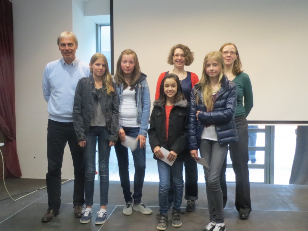 Auf eine „Reise durch Europa“ sollten sich die Teilnehmer des Wettbewerbs begeben. Über 50 Schülerinnen und Schüler sind dieser Aufforderung gefolgt und haben tolle Ergebnisse ihrer Überlegungen eingereicht. Am Dienstag (23.4.) würdigten Herr Maas sowie Frau Schmies und Frau Kohs bei der Siegerehrung in der Mensa während der ersten großen Pause die Leistung aller Teilnehmer und beglückwünschten insbesondere die vier Gewinnerinnen, die jeweils einen Buchgutschein über 15,– € erhielten.