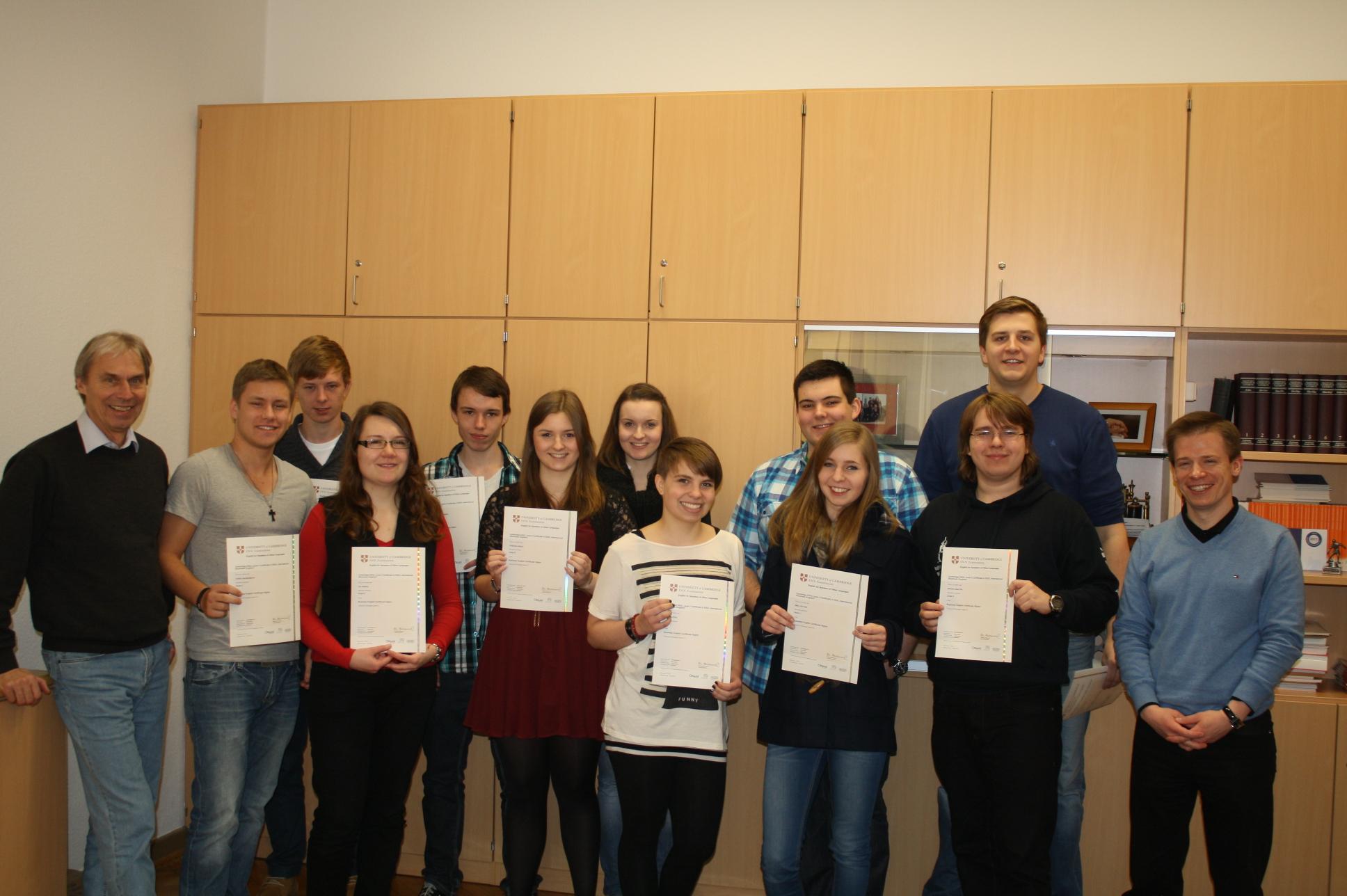 Am Mittwoch, den 25.01.2012, wurden 14 Schülerinnen und Schüler der Oberstufe des Hittorf-Gymnasiums mit dem Cambridge Business English Certificate ausgezeichnet. Insgesamt haben 17 Schülerinnen und Schüler an der AG Wirtschaftsenglisch von Herrn Janus zur Vorbereitung auf das Cambridge Business English Certificate teilgenommen, davon haben sich dann 14 Kursmitglieder dafür entschieden, die Prüfung zu absolvieren. Alle 14 Schülerinnen und Schüler haben diese Prüfung erfolgreich bestanden und besitzen mit dieser wertvolle Zusatzqualifikation die Chance im Ausland zu studieren. Die Prüfungen fanden am Hittorf-Gymnasium statt, da dies die einzige Schule im Regierungsbezirk Münster ist, die diese AG und die dazugehörigen Prüfungen anbietet. Extra eingeflogen kam ein Inspektor aus Cambridge, der sich ein Bild von dem Prüfungsablauf und den Teilnehmer machen wollte, er war sehr zufrieden mit dem, was er gesehen hat.