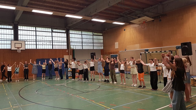 Der erste Musical-Talentworkshop am Hittorf war ein voller Erfolg. Vier Tage lang wurde unter der fachkundigen Leitung von Cast-Mitgliedern des Ruhricals "Radio Ruhrpott" gesungen, getanzt und geschauspielert. Das Ergebnis konnte sich sehen und hören lassen - die Truppe hat in der TH2 wirklich alles gegeben und viel Spielfreude verbreitet. Das Trainerteam ist voll des Lobes. Weitermachen bitte!