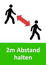 Auf dem gesamten Schulgelände ist die Einhaltung eines Mindestabstandes von 2 Metern wichtig. Niemand darf eng in Gruppen zusammenstehen: