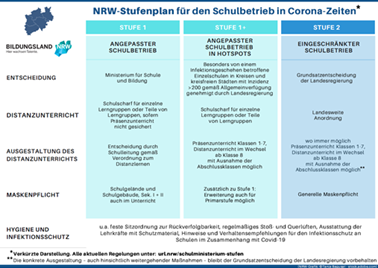 · Ab Montag, 11. Januar 2021 ist mindestens ein eingeschränkter Schulbetrieb mit Präsenzunterricht für die Stufen 5, 6, 7 und Q2 geplant. In den Jahrgängen 8 bis Q1 „kann Distanzunterricht im Wechsel von Präsenz- und Distanzbetrieb“ vorgesehen werden.