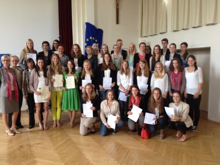 Die Zertifikate wurden auf der CertiLingua-Festveranstaltung am St. Ursula-Gymnasium in Attendorn am Dienstag, dem 01. Juli 2014, von Vertretern des Ministeriums für Schule und Weiterbildung in Düsseldorf sowie der Bezirksregierungen Arnsberg, Detmold und Münster überreicht.