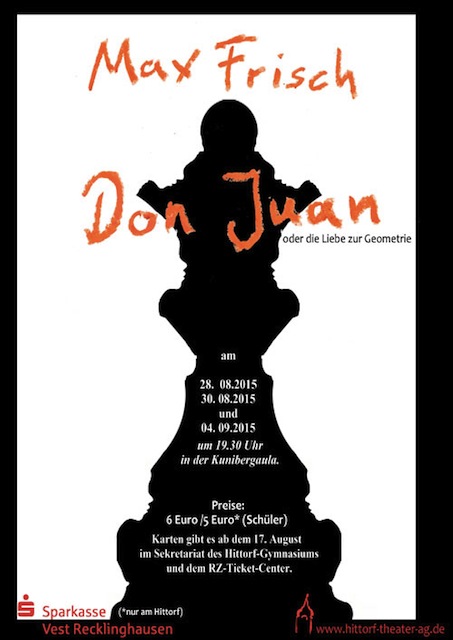 Bei Max Frisch geht Don Juan ins Bordell, jedoch nicht, um den Verführer zu mimen, sondern um Schach zu spielen. Natürlich hat auch dieser Juan seine Affären, aber eigentlich langweilt es ihn, täglich mit betrogenen Gatten zu fechten, um anschließend die zahlreichen Witwen zu trösten. Viel lieber würde er sich seiner Geometrie widmen, fernab von Miranda, der Dirne, die sich in ihn verliebt hat oder Donna Anna, der er etwas zu voreilig die Ehe versprochen hat.