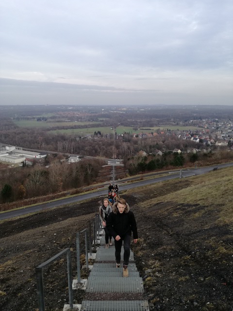 Was folgte, waren 10 Tage voller Erlebnisse und neuer Erfahrungen. Frei nach dem Motto „gemeinsames Schwitzen schweißt zusammen“, trafen sich alle Schüler/innen zusammen mit den deutschen und spanischen Lehrkräften am Samstagmorgen bereits um elf Uhr, um gemeinsam die Halde Hoheward über die 524 Treppenstufen zu erklimmen. Die klare Sicht über das Ruhrgebiet sowie zahlreiche Selfies vor dieser Kulisse entschädigten für die Anstrengungen nach einer kurzen Nacht. Anschließend ging es über die Drachenbrücke hinab und es folgte ein kleiner Fußmarsch zum Bowlingcenter, wo die Jugendlichen das Sportprogramm fortsetzten.