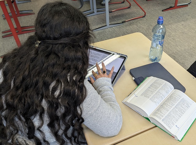 Die anderen stimmen zu. Murad (EF) erklärt: „Satzstrukturen und Wortspiele lassen sich nicht immer 1:1 übertragen. Man muss überlegen, wie man nicht nur den Inhalt, sondern auch den Stil des Texts gut erfasst.“