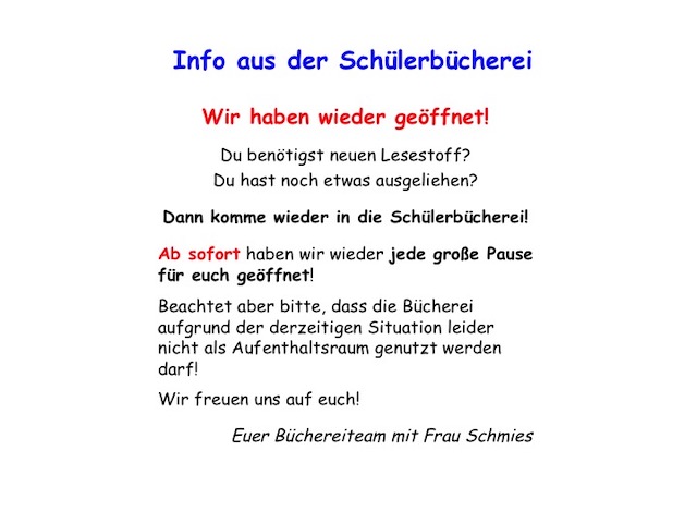Die Schülerbücherei hat wieder geöffnet