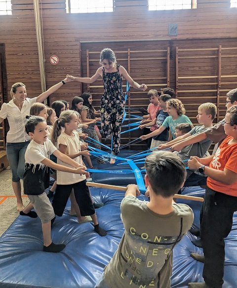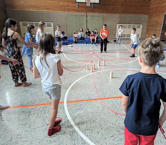 Bei der Team-Balancierband-Challenge bewiesen die Kinder Mut und Verlässlichkeit.