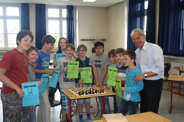 Zum Abschluss des Schuljahres haben die Hittorfer ihr Schachkönnen „an den Schachdiplomen“ gemessen. Hier zahlte sich das Training aus und alle teilnehmenden Schülerinnen und Schüler konnten eines der begehrten Schachdiplome (Bauern-, Läufer- und Springerdiplom) erringen. Die Übergabe der Diplome übernahm unser Schulleiter Herr Maas.
