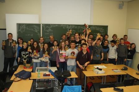 Neben den Preisträgern des Känguru-Wettbewerbs wurde die Klasse 9d am 07.05.14 mit einer Sonderehrung überrascht. Als einzige Klasse hat sie seit der 5. Jahrgangsstufe immer geschlossen am Känguru-Wettbewerb teilgenommen und wurde dafür von Herrn Maas gelobt und mit Känguru-förmigen Chips belohnt.