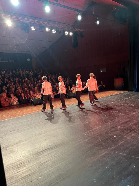 Die Zusammenarbeit mit der Musical-Produktion "Radio Ruhrpott" geht in die zweite Runde. Am 1. Oktober standen zum ersten Mal Hittorfer*innen im Rahmen des Familiensonntags mit den Profis in Castrop auf der Bühne. Vor gut besetztem Haus spielten sie wie alte Hasen in mehreren Szenen mit und ergänzten die Tänzer bei einigen Choreographien. Diese Besonderheit soll auch bei den kommenden Familiensonntagen des Ruhricals zum Tragen kommen und dabei noch weiter ausgebaut werden. Das war jedenfalls schon einmal ein Knaller-Anfang! Weiter so und Glück auf!