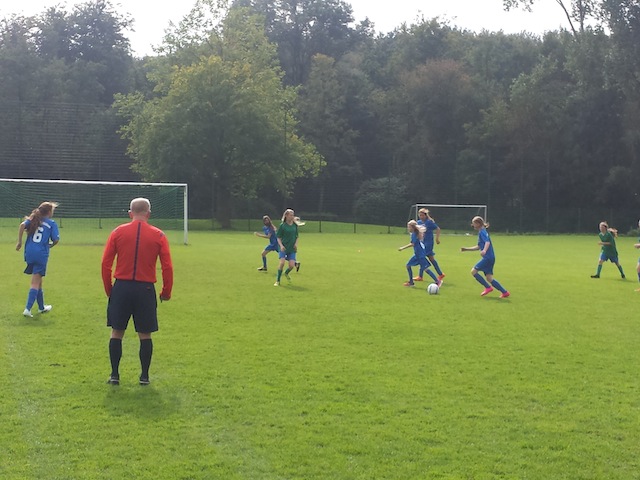 Deutlich erfolgreicher agierten die Mädchen derselben Alterklasse. Dies war allerdings unerwartet, da die Mannschaft aufgrund einiger Ausfälle sogar auf Spielerinnen der 6. Klasse zurückgreifen musste. Diese machten ihre Sache gegen die Auswahl der Gesamtschule Suderwich aber mehr als ordentlich. Gemeinsam mit der Erfahrung der Älteren kassierten sie nur ein Gegentor und schossen ihrerseits neunzehn (19!) Treffer. Nach dieser tollen Leistung dürften in der Endrunde am 26.10. mit dem Albert-Schweitzer/Geschwister-Scholl Gymnasium Marl, der Erich-Kästner-Realschule Gladbeck und dem Adalbert-Stifter Gymnasium Castrop deutlich stärkere Gegner warten, mit den Rückkehrern werden unsere Mädchen aber schwer zu schlagen sein.