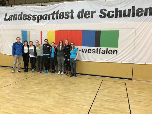 Im letzten Spiel ging es dann zumindest noch um einen versöhnlichen Abschluss. Gegen das Gymnasium St. Xaver aus Bad Driburg konnten die Hittorferinnen ihre Größenvorteile ausspielen, sodass fast alle Spielerinnen Erfolgserlebnisse hatten. Bereits nach vier Minuten führten die WKIII-Mädchen mit 12:0, ließen sich den Sieg auch in der Folge nicht mehr aus der Hand nehmen. Das Endergebnis lautete 38:20. Somit steht mit Platz fünf auf Landesebene am Ende ein toller Erfolg für das Hittorf-Gymnasium.