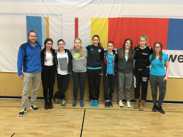 Im ersten Spiel des Turniers ging es für die Hittorferinnen gegen die International School Düsseldorf. Nach fünf Minuten betrug der Rückstand überschaubare drei Punkte (10:13), allerdings erspielten sich die Düsseldorferinnen eine 27:20-Halbzeitführung. Angeführt von Lilly Kaprolat gab die Mannschaft nicht auf, kämpfte sich noch einmal auf 34:38 (17. Minute) heran. Am Ende hieß es allerdings 48:38 für Düsseldorf. In der zweiten Partie musste gegen das Otto-Hahn-Gymnasium Herne ein Sieg her, um sich noch für das Halbfinale zu qualifizieren. Gegen die erfahrenen und abgeklärten Hernerinnen fingen sich die Hittorf-Mädels allerdings zu viele Schnellangriffe, so dass es nach vier Minuten bereits 15:6 für den Gegner stand. Zur Halbzeit betrug der Rückstand sogar 15 Punkte (22:37). Für Lilly Kaprolat wurde es immer schwieriger, sich teilweise gegen drei Gegnerinnen durchzusetzen. Zudem war Svenja Sagasser durch eine Erkältung geschwächt. Letztendlich gewann das Otto-Hahn-Gymnasium deutlich mit 62:39.
