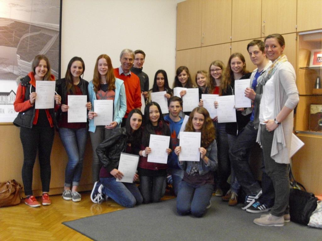 Im Februar und März nahmen 17 Schüler/innen des Hittorf-Gymnasium an den DELF-Prüfungen der Niveaustufen A2, B1 und B2 teil (A2: Annika Abdel Nabi, Annika Bennemann, Naomi Brösicke, Sophie Erdmann, Noah Kappert, Philippa Leson, Pia Opitz, Lucas Rey, Tim Schäfers; B1: Anna Lucia Bußkamp-Castro, Eda Daglioglu, Sina Dorkowski, Leon Schäfer, Luisa Schulte, Katharina von Eichstedt; B2: Leonie Heimrath, Maximilian Wilms). Stolz nahmen die Schüler/innen die Diplome von Herrn Maas entgegen, der ihnen zu den erfreulichen Ergebnissen gratulierte. Eine besondere Leistung erzielte die Schülerin Sophie Erdmann mit 90,5 von 100 Punkten in dem Niveau A2.