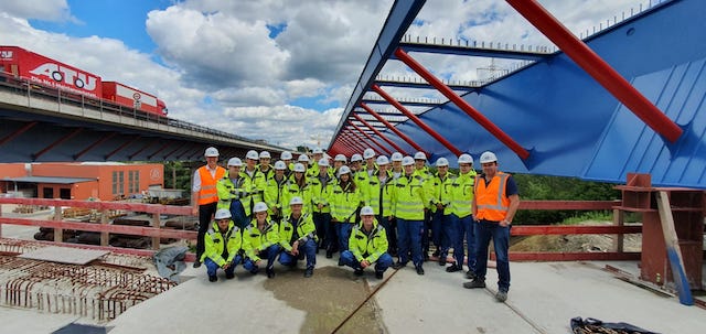 20 Schülerinnen und Schüler des Projektkurses „Zukunft Bauen“ besuchten im Juni die Großbaustelle der Lennetalbrücke auf der A45 bei Hagen.